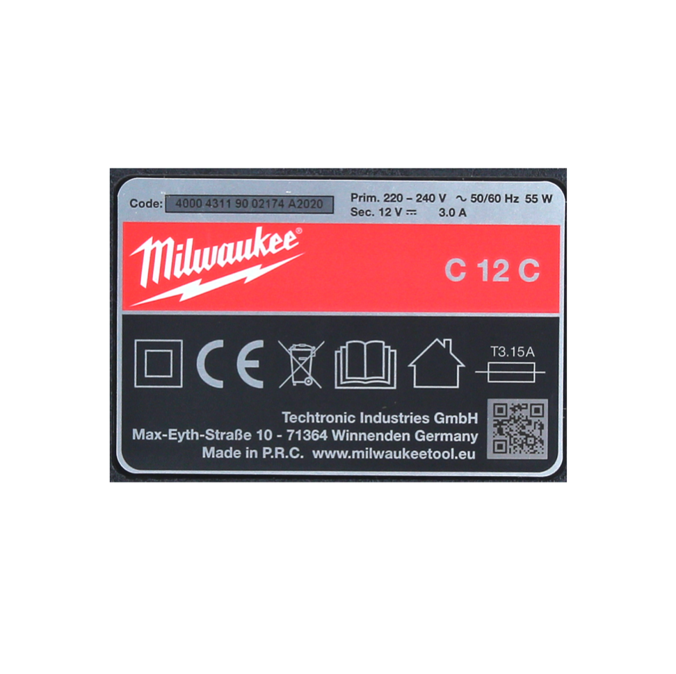 - 1x caricabatterie Milwaukee M12 per batterie agli ioni di litio da 12 V