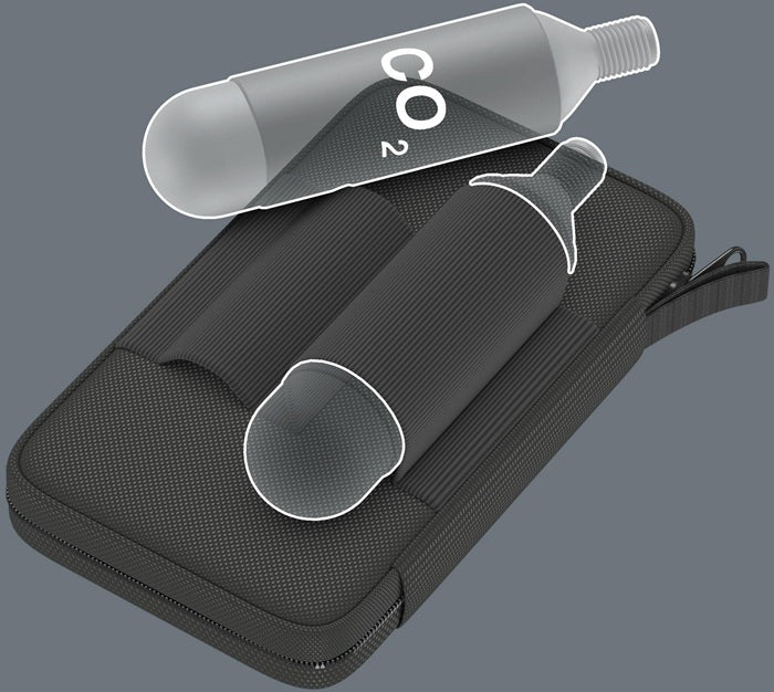 - Fornito con valigetta compatta con materiale esterno di protezione delle superfici e custodia morbida per il trasporto dei singoli utensili in maglia