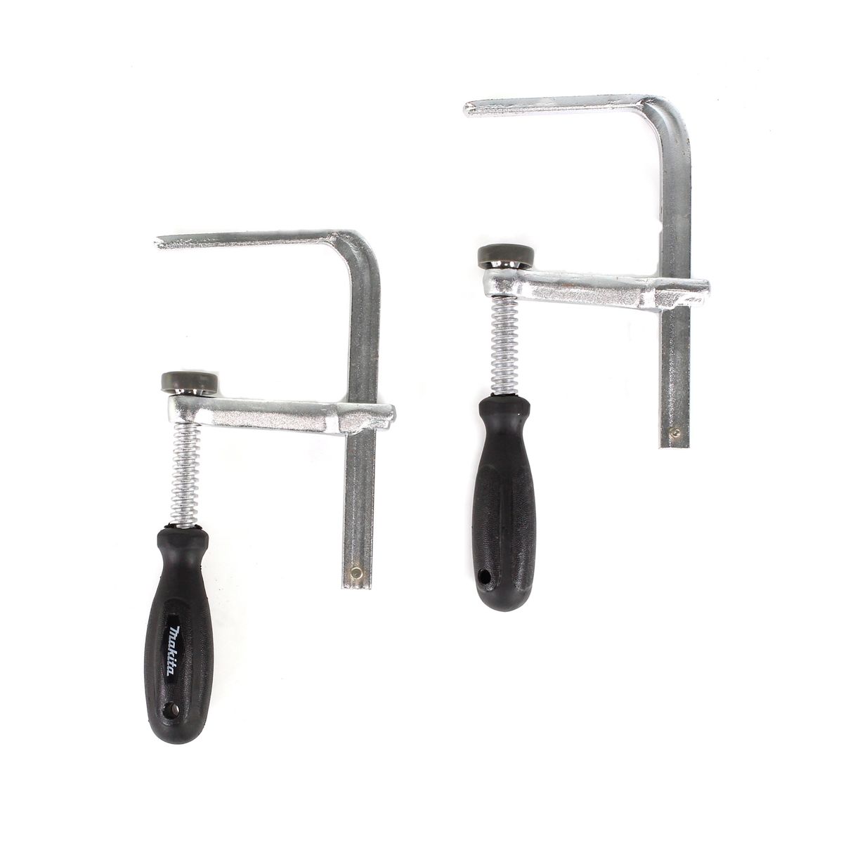 I connettori per guide Makita consentono di collegare facilmente due o più guide con un accoppiamento perfetto. I connettori per guide scompaiono completamente nella guida, consentendo alla macchina di scorrere agevolmente su di essa. Avvitando il connettore per guida alla guida si garantisce una presa sicura e salda. Con la guida Makita è possibile completare la sega come si desidera. Questi morsetti a vite di Makita sono particolarmente robusti e durevoli. Sono realizzati interamente in acciaio e sono potenti e ideali per le guide Makita e le seghe a tuffo. La profondità della gola è di 100 mm e la larghezza di serraggio è di 185 mm.