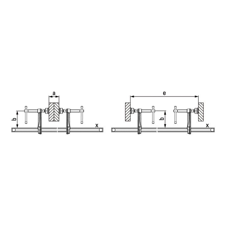 morsetto a vite variabile ad alte prestazioni con guida in profilato trafilato a freddo e zincato - 2 bracci di scorrimento in acciaio forgiato e temperato - riposizionabile per lo spargimento senza attrezzi - il morsetto può essere spinto attraverso le aperture nel pezzo - forza di serraggio fino a 6500 N (per larghezze di serraggio fino a 2000 mm) o 9000 N (per larghezze di serraggio di 3000 mm) - piastra di pressione speciale orientabile a 35° resistente al calore (per larghezze di serraggio fino a 2000 mm) - con inserto in acciaio sinterizzato per larghezze di serraggio di 3000 mm