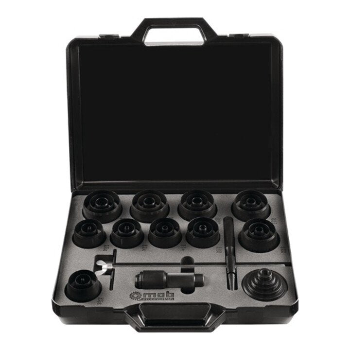 in custodia di plastica con supporto in acciaio, dispositivo di centratura e punzoni interni ed esterni in acciaio temprato - gli anelli di tenuta sono punzonati al centro