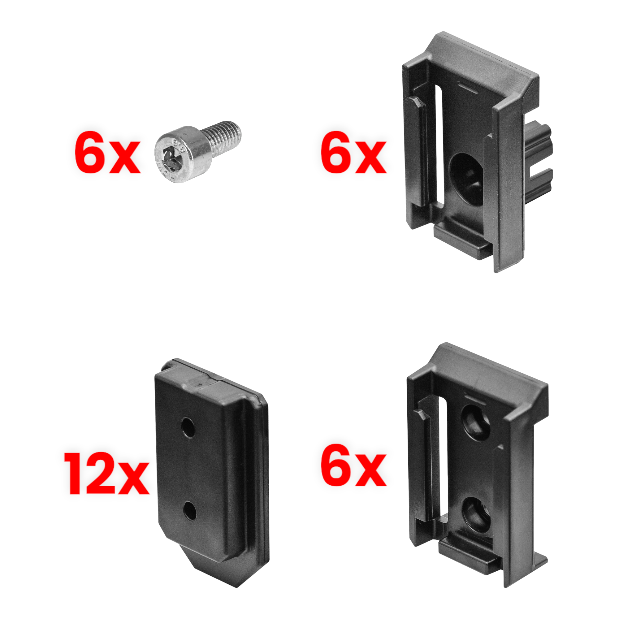 Con il set di connettori personalizzati 1 di Qbrick System, potete modificare la vostra cassetta degli attrezzi come preferite! È sufficiente collegare gli zoccoli di connessione alla cassetta degli attrezzi e attaccare la controparte all'oggetto desiderato. Non ci sono limiti all'organizzazione dei vostri utensili!