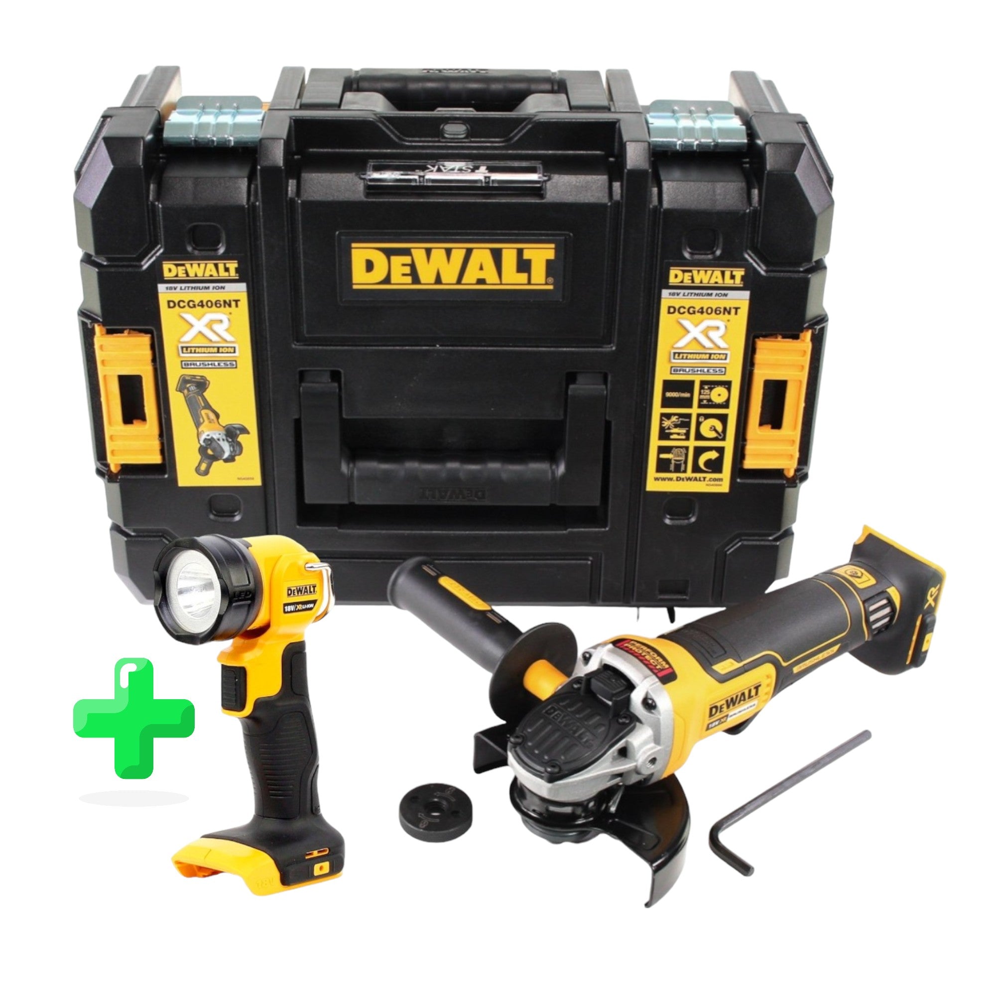 Smerigliatrice angolare a batteria DeWalt DCG 406 NT 18 V 125 mm brushless Solo + TSTAK + lampada a batteria DeWalt DCL 040 18 V XR Li-Ion