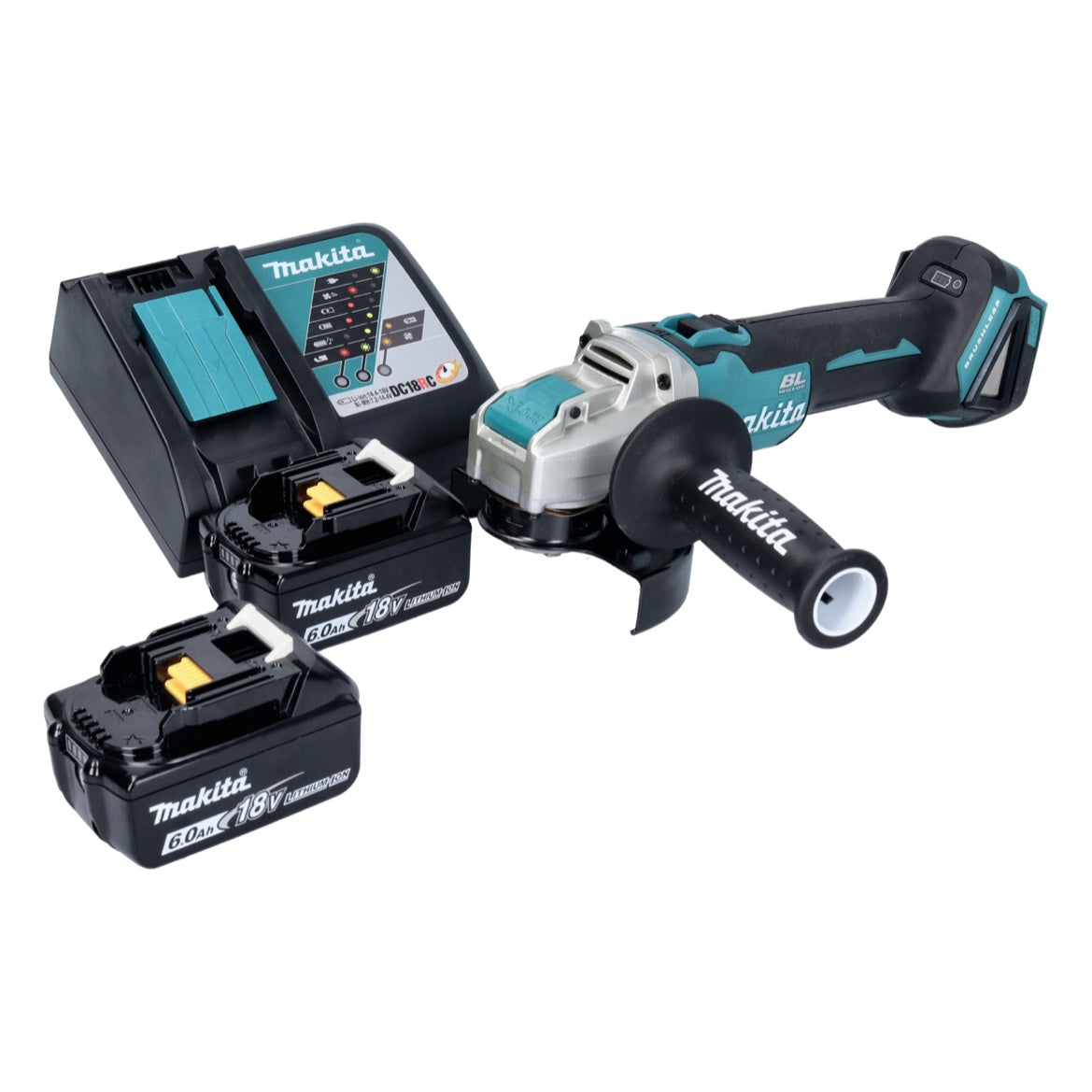 Smerigliatrice angolare a batteria Makita DGA 521 RGX1 18 V 125 mm X-LOCK Brushless + 2x batteria ricaricabile 6,0 Ah + caricabatterie