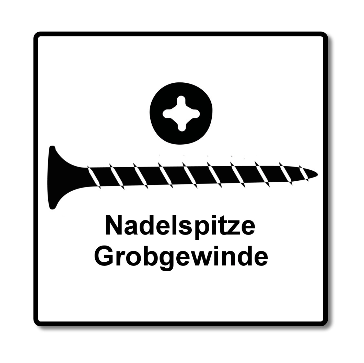 - 1x SPAX GIX-B Grobgewinde magaziniert, 3,9 x 55 mm, 800 Stück, Vollgewinde, Trompetenkopf, Kreuzschlitz H2, Nadelspitze, Phosphatiert schwarz ( 1891170390556 )