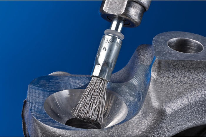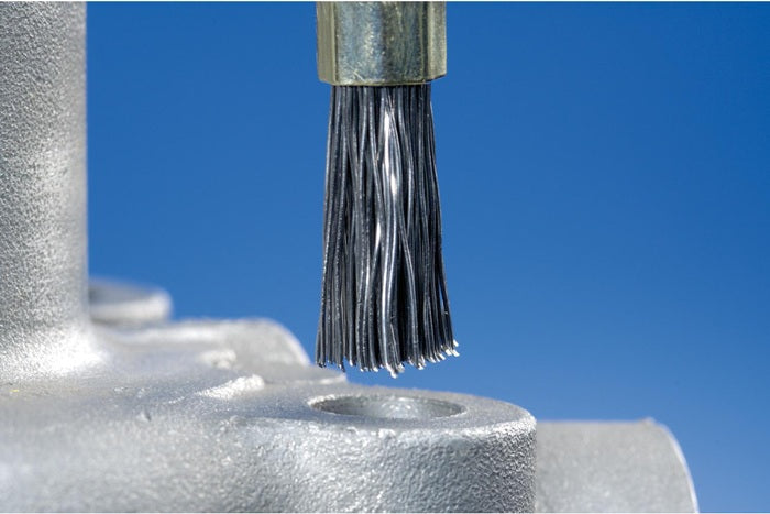 - Vantaggi: Produce superfici fini. Lunga durata grazie all'utilizzo del filo speciale PFERD. Accesso ottimale a zone difficili da raggiungere, come fori e cavità, grazie alla diffusione del filamento durante la rotazione.