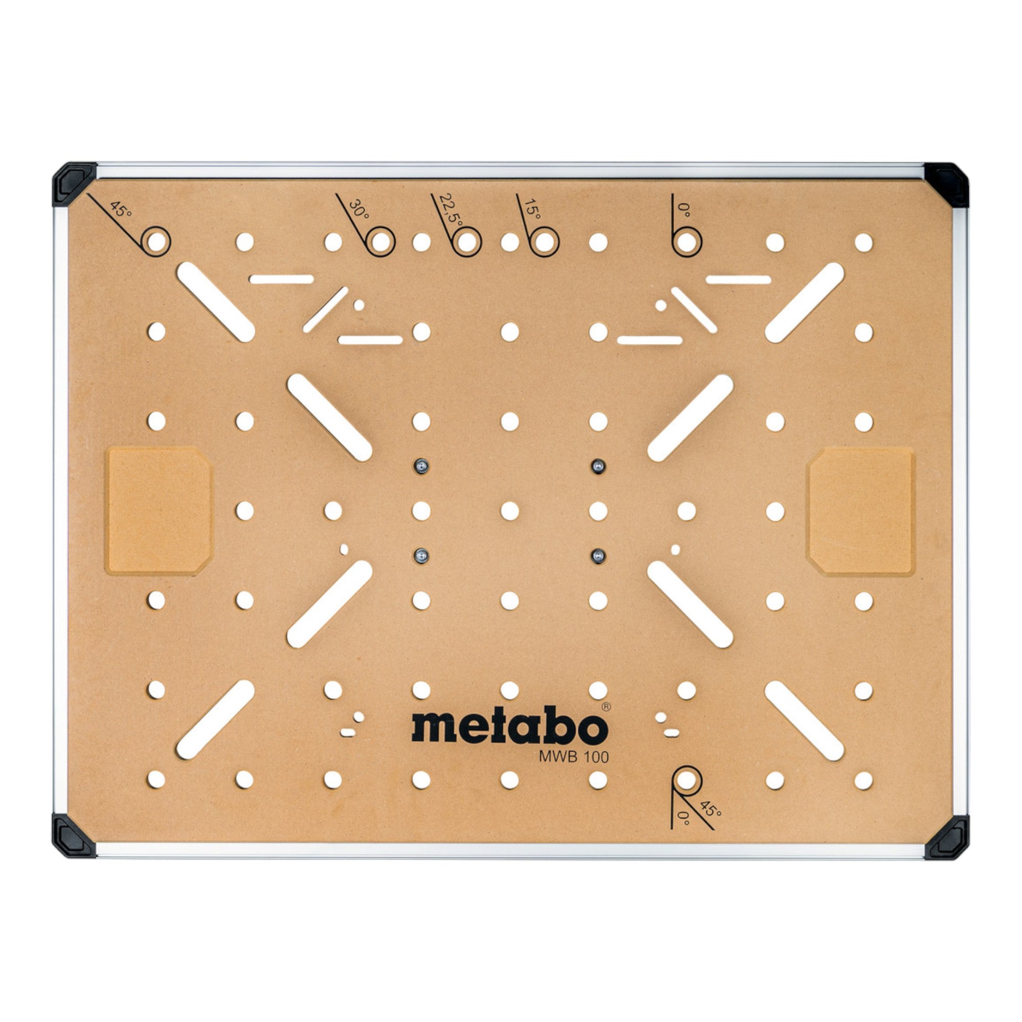 Il tavolo multifunzione Metabo MWB 100 è il banco di lavoro mobile ideale per un'ampia gamma di applicazioni. Grazie al pratico meccanismo pieghevole, può essere montato rapidamente e smontato altrettanto velocemente. Le gambe regolabili in altezza garantiscono un'altezza di lavoro ottimale, mentre il piede di livellamento assicura un appoggio sicuro anche su superfici irregolari. La scanalatura a T su tutto il perimetro consente il bloccaggio laterale con morsetti adeguati e il robusto piano in MDF, che può anche essere sostituito, è dotato di una foratura di 20 mm e di un pratico indicatore di angolo. I connettori angolari in dotazione possono essere utilizzati anche per collegare tra loro più tavoli e creare una superficie di lavoro più ampia. Il tavolo multifunzionale offre anche numerose opzioni di montaggio per macchine semi-stazionarie. Il leggero telaio in alluminio e le maniglie di trasporto rendono il trasporto del tavolo un gioco da ragazzi. Una scanalatura circolare consente inoltre di agganciare appositi contenitori a giorno per avere sempre a portata di mano i materiali di lavoro.