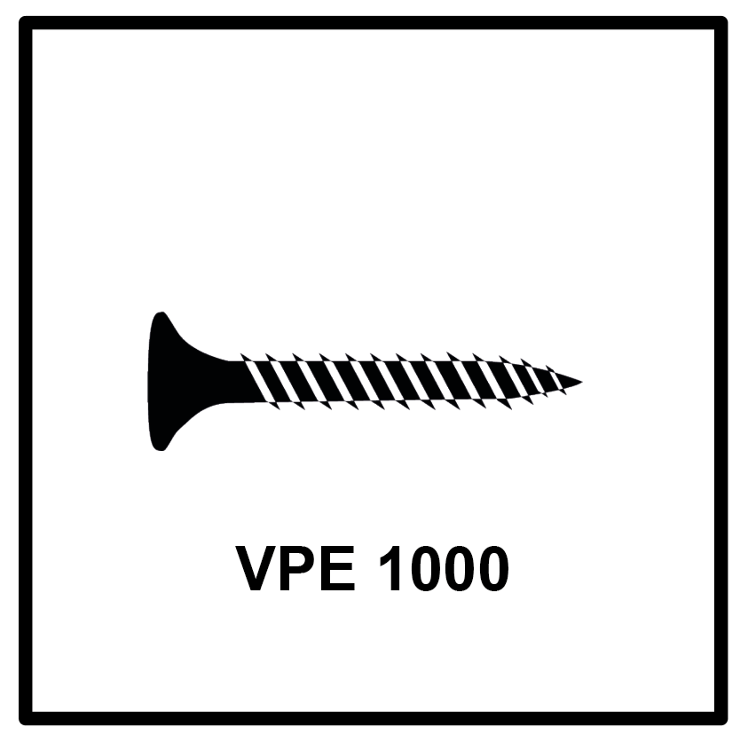 - 1000x Technofast GF3525TD Viti per cartongesso 3,5 x 25 PH2 Filettatura fine
