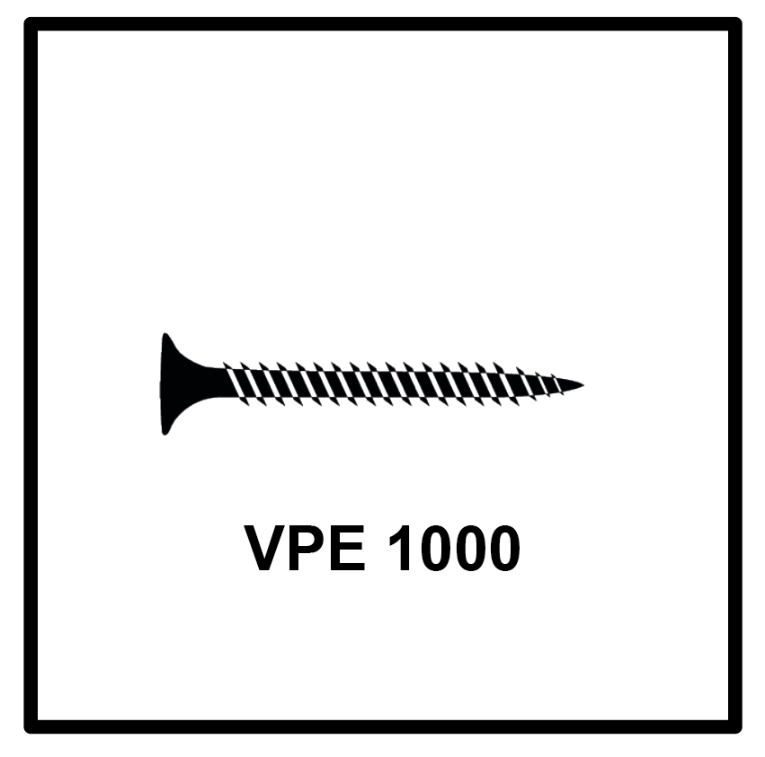 Le viti per cartongesso Technofast sono ideali per l'impiego nell'uso in cartongesso e convincono per il loro rivestivemento in fosfato grigio.