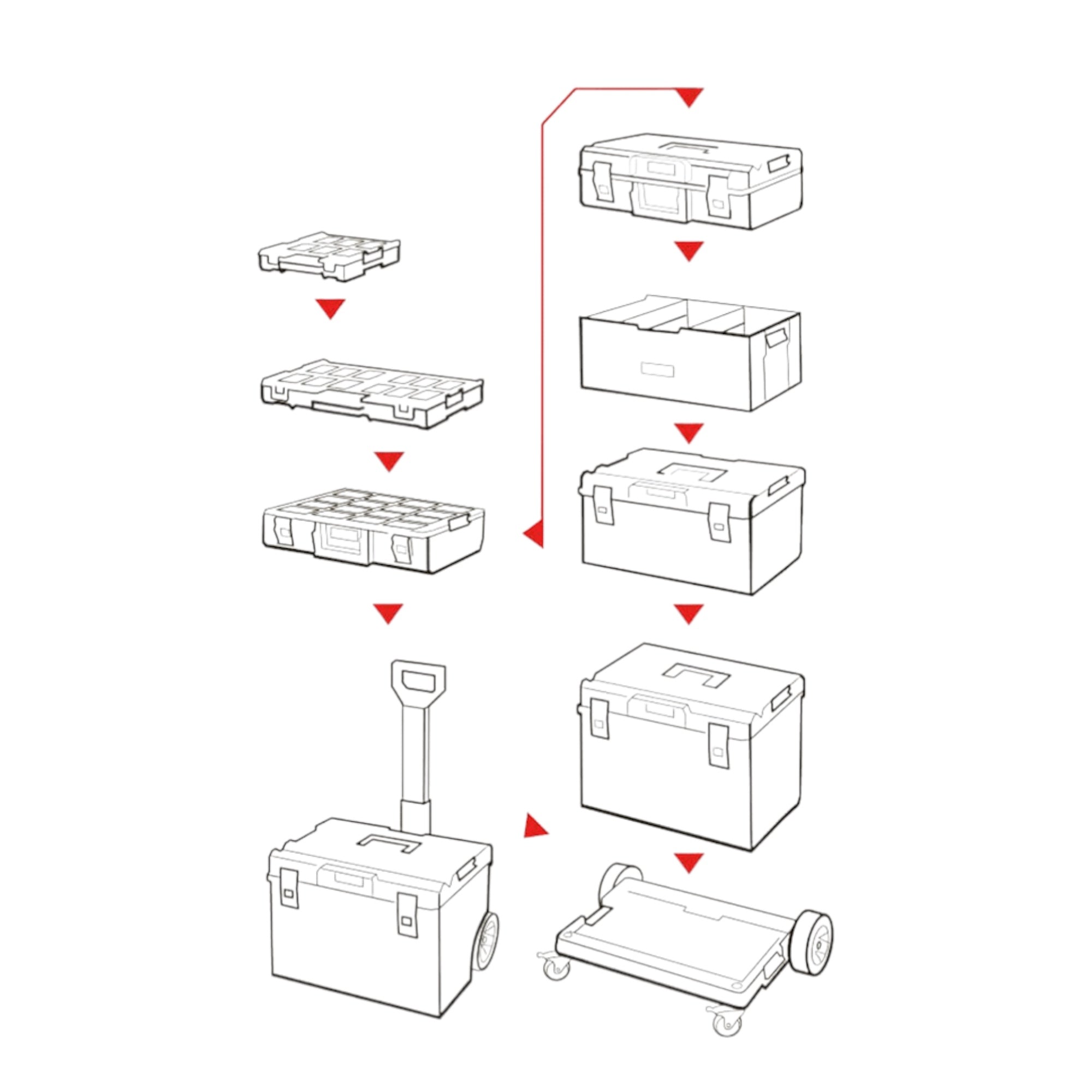 Caratteristiche particolari: cassettiera mobile, 2 cassetti, compatibile con L-Line, divisori e scatole per organizzare i cassetti, cassetti con guide in metallo, base per officina mobile, inserti filettati M8 integrati, plastica ULTRA robusta