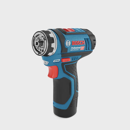 Il GSR 12V-15 FC è un trapano avvitatore a batteria da 12 volt molto compatto di Bosch con sistema FlexiClick. Il sistema FlexiClick consente all'utente di padroneggiare fino a cinque diverse applicazioni con il trapano avvitatore. Il GSR può essere dotato di un portabit magnetico, di un portabit bloccabile, di un mandrino rapido standard da 10 mm, di un attacco angolare o di un attacco eccentrico grazie alla possibilità di cambiare la punta dell'utensile in modo molto semplice e rapido. Grazie al suo design compatto, il trapano avvitatore è perfetto per le aree difficili da raggiungere, mentre l'utensile convince per le sue prestazioni grazie alla sua coppia fino a 30 Nm. Il set di tre accessori Bosch, composto da attacco angolare, attacco per punta e attacco per eccentrico, completa il mandrino a serraggio rapido da 10 mm fornito con il GSR 12V-15 FC. La compatibilità senza attrezzi con il trapano avvitatore aumenta la flessibilità del dispositivo in quasi tutte le possibili applicazioni di questa macchina. L'accessorio angolare è adatto per lavorare negli spazi più ristretti grazie al suo design compatto e all'angolo regolabile in 16 posizioni. L'accessorio può essere bloccato in posizione senza attrezzi e può essere combinato con gli altri due accessori inclusi nel set. L'attacco per bit con esagono da 1/4" consente di lavorare con precisione grazie al suo design compatto e garantisce una presa sicura del bit. Il terzo accessorio consente di lavorare vicino a bordi e pareti grazie al suo design eccentrico. L'attacco eccentrico può essere bloccato in 16 posizioni diverse.